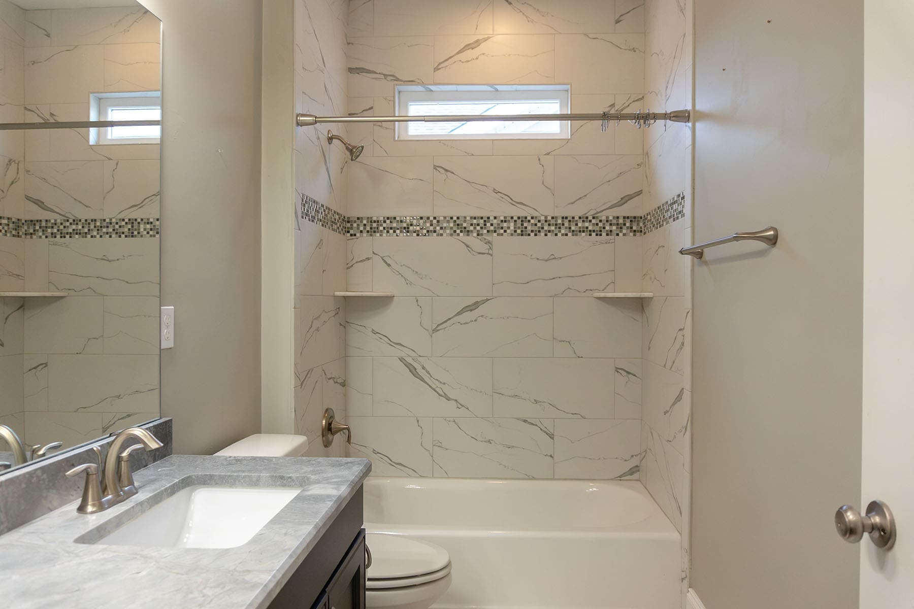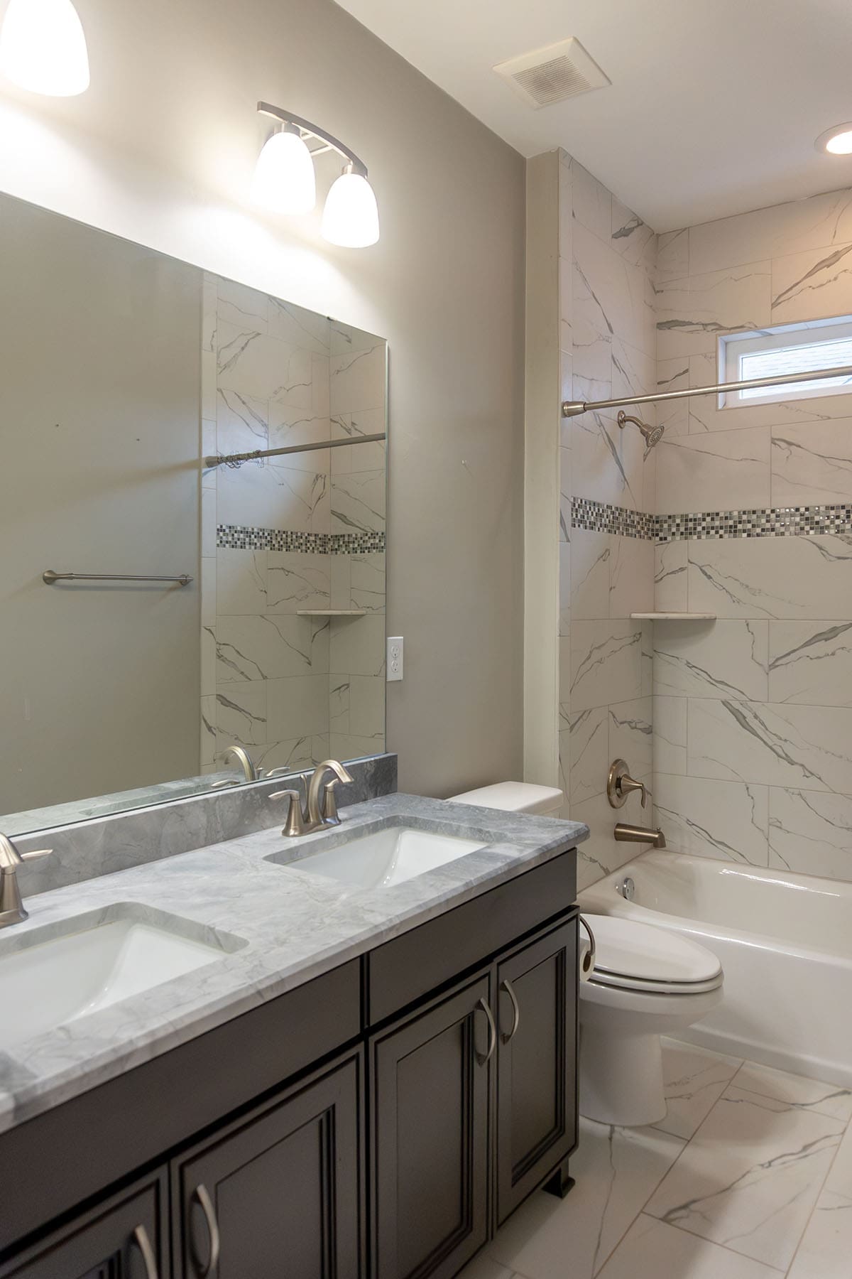 Primary suite with walk-in shower and ample closet space