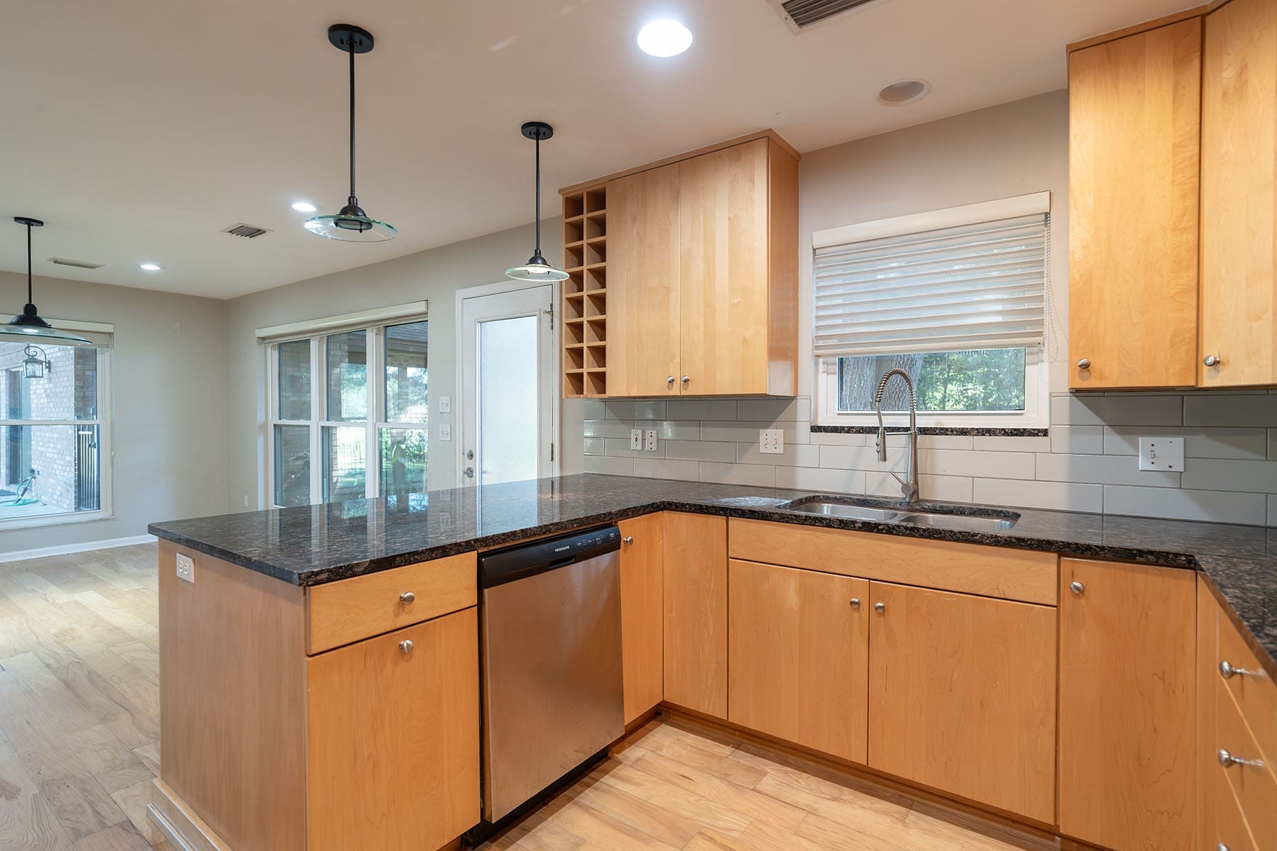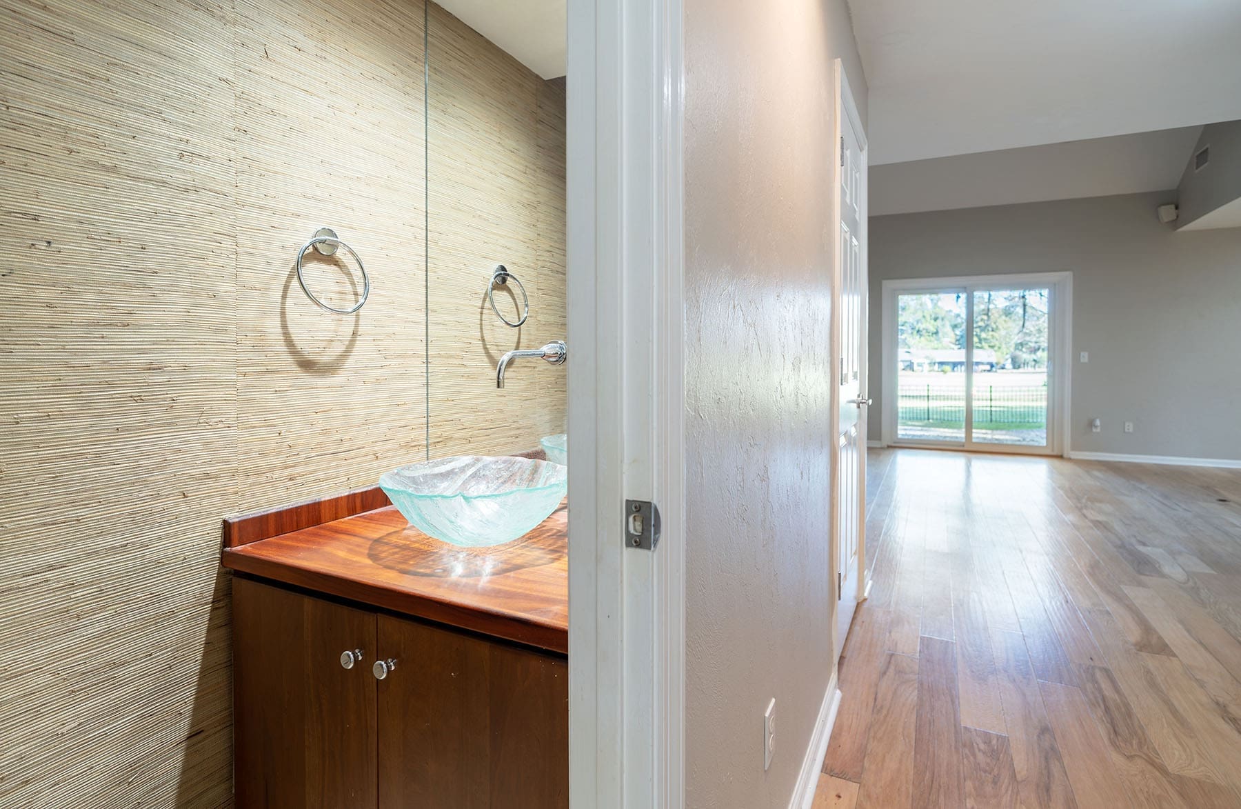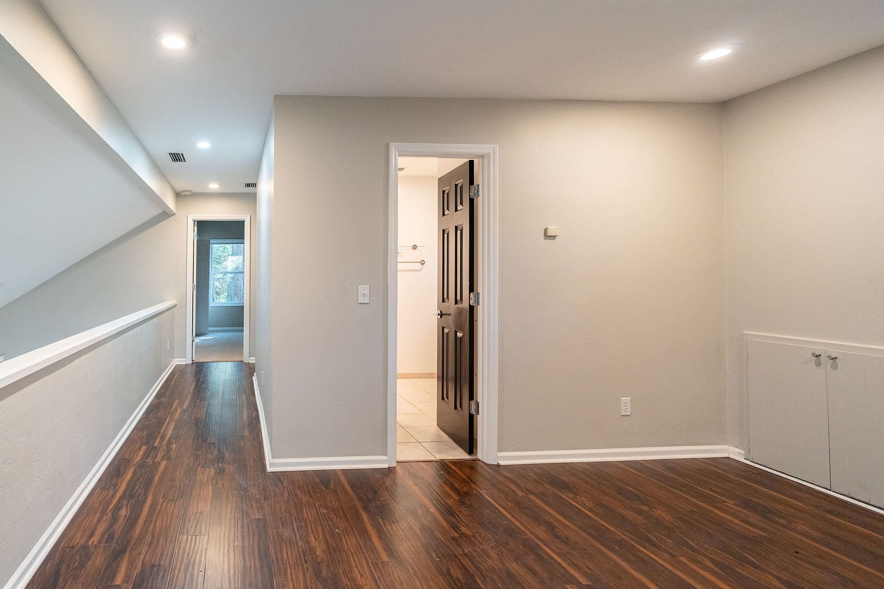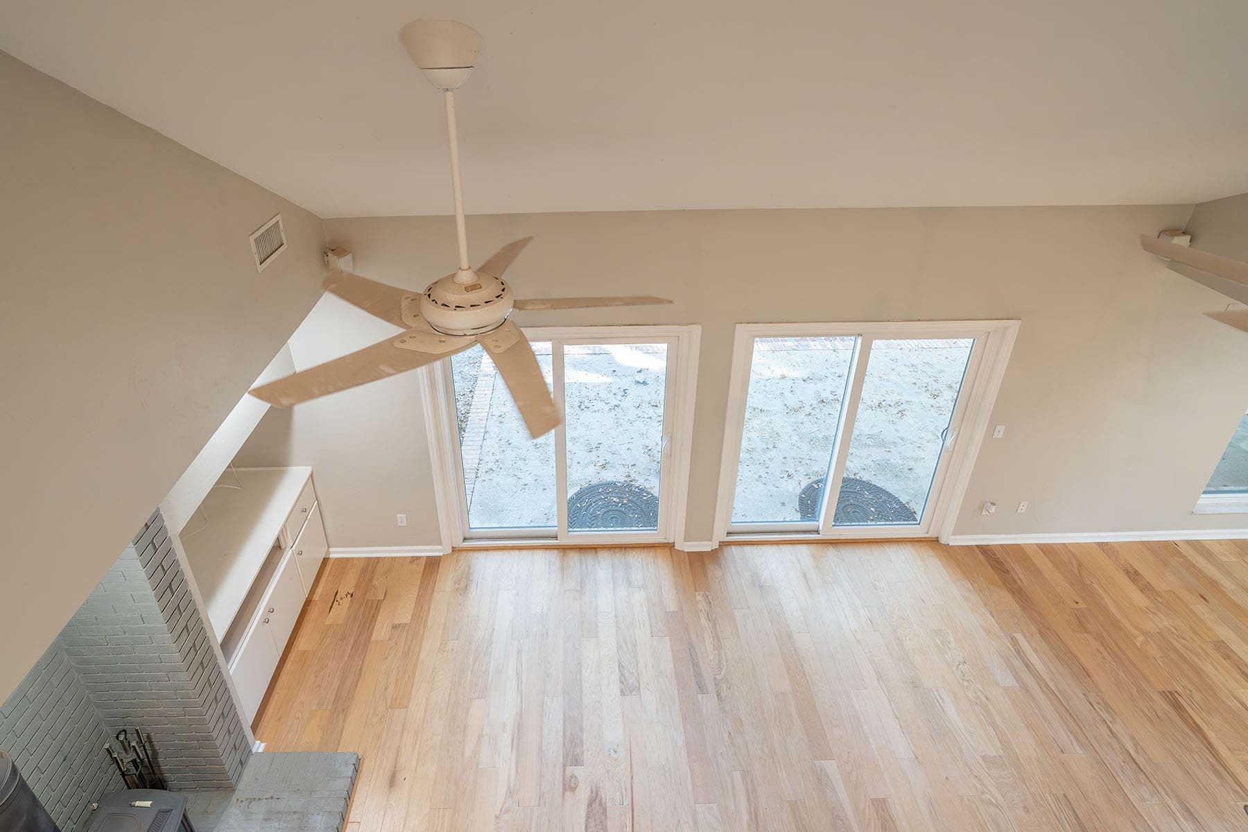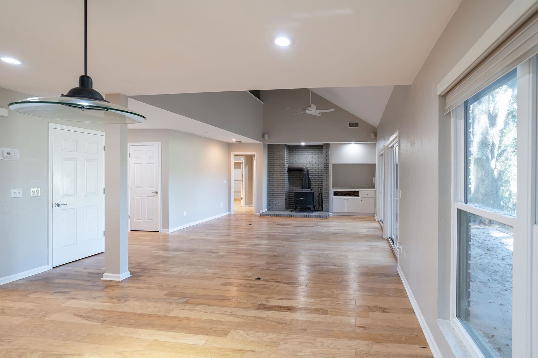 Open, flowing floor plan with hardwood floors throughout the main living areas
