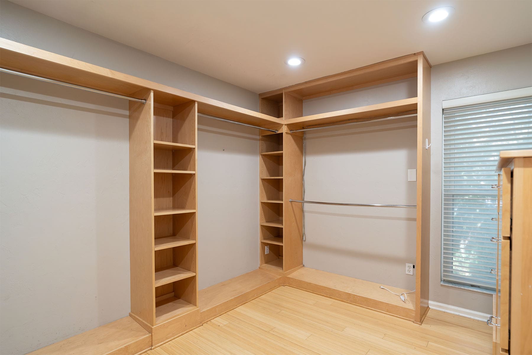 Kitchen featuring granite countertops, stainless steel appliances, and a pantry closet with roll-out shelves