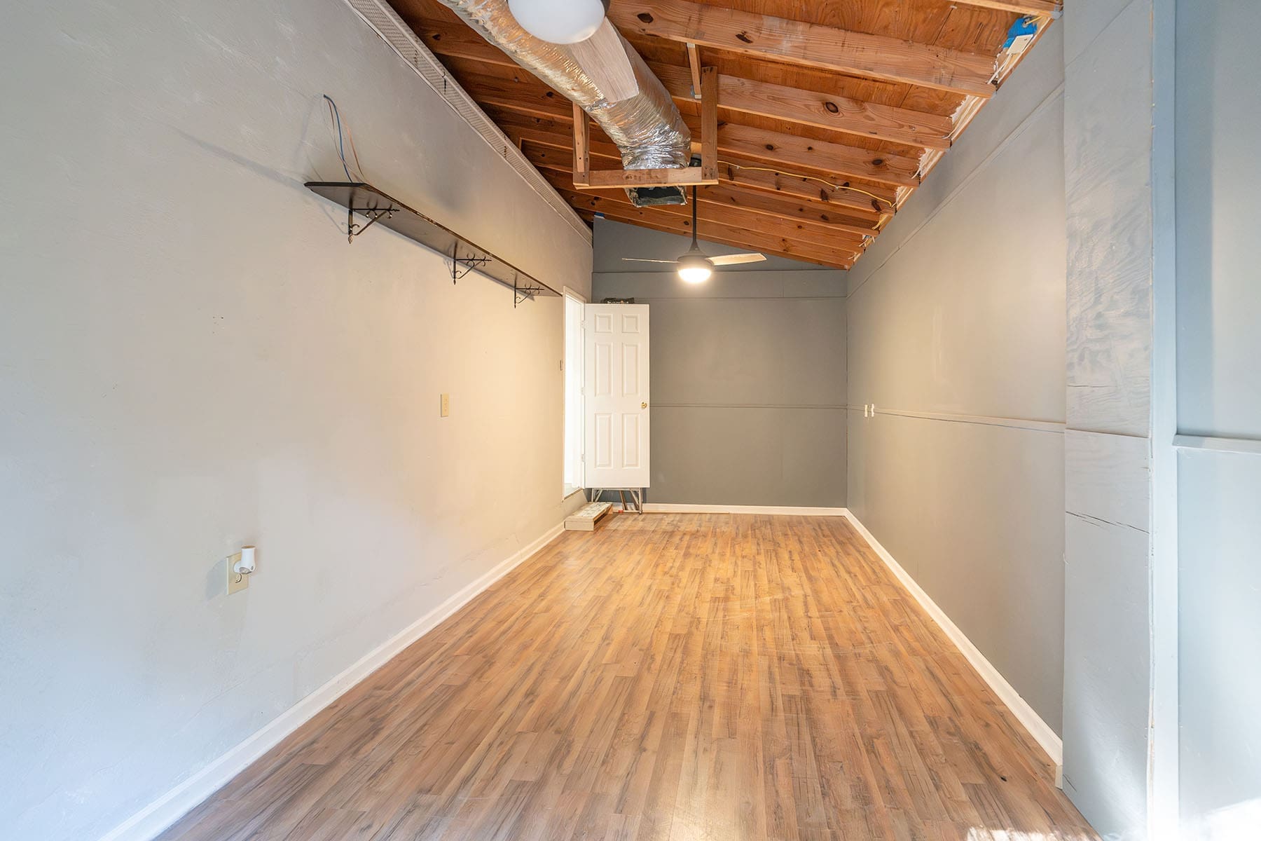 Open, flowing floor plan with hardwood floors throughout the main living areas